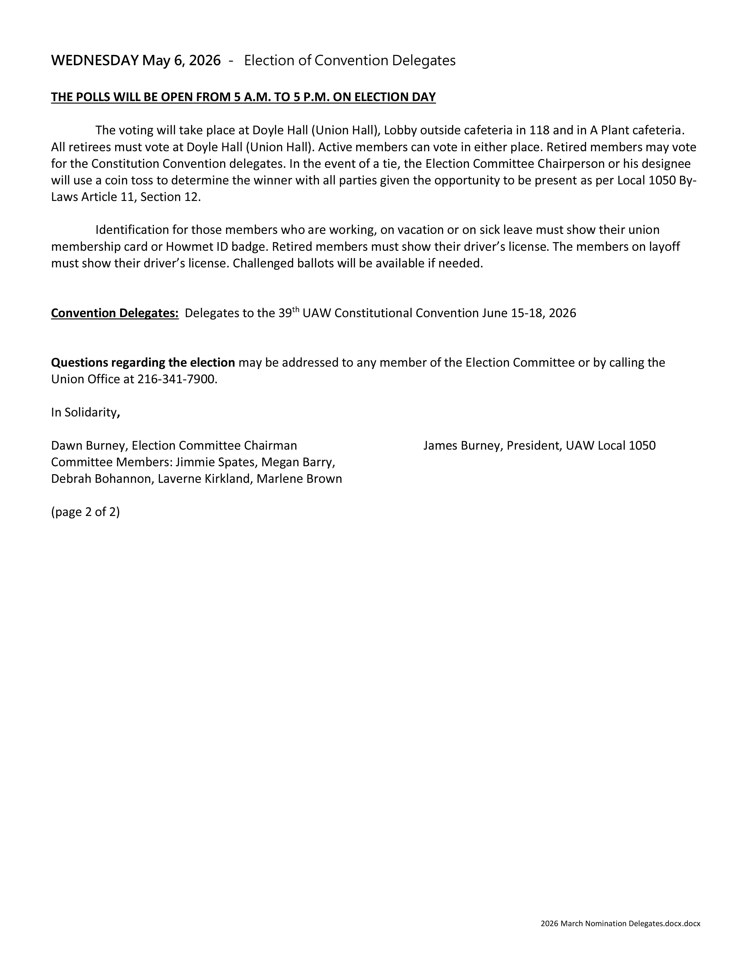 The Text and Graphics displayed are copyright �2006-2024 by the UAW Local 1050. All Rights Reserved. Use of any of the content posted on this website without prior written permission from the UAW Local 1050 is strictly prohibited. The UAW logo and the LUCA logo are registered trademarks of the UAW and are used with permission. All other copyrights and trademarks are the property of their respective owners. This web site is an official publication of the UAW Local 1050. The UAW Local 1050 makes every effort to ensure accuracy and reliability of the data contained in these documents. Every attempt is made to keep the information up-to-date and accurate however, the UAW Local 1050 makes no warranty, guarantee, or promise, expressed or implied, concerning the content of the documents. The UAW Local 1050 is not responsible for the content or accuracy of any pages linked to or referenced from this site nor does the UAW Local 1050 endorse the pages linked to or referenced from this site.